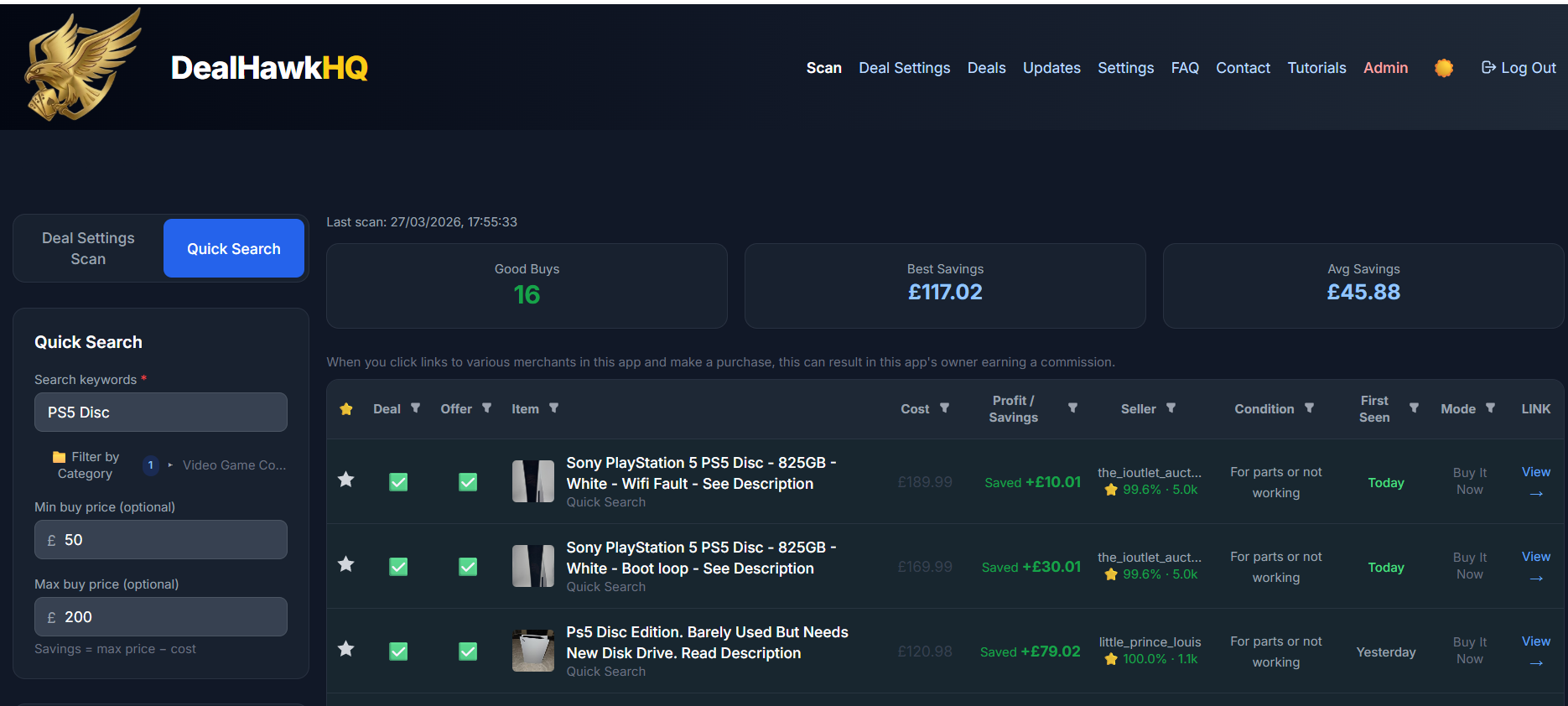Real results found by DealHawkHQ scanners
